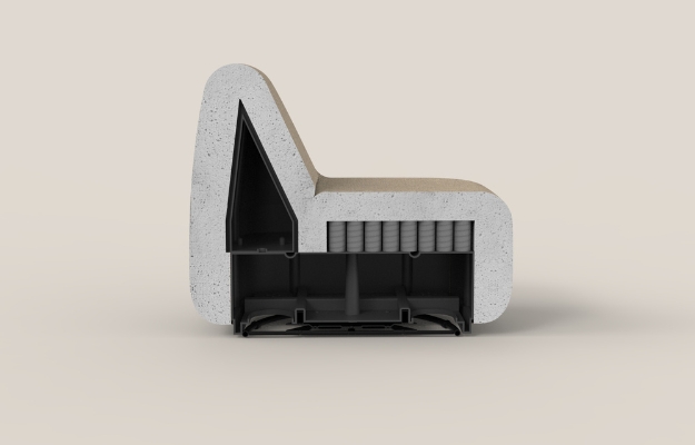 Ook in de afwerking is rekening gehouden met circulariteit. Traditionele nietjes in de stoffering zijn vervangen door een speciaal kunststof profiel. Hierdoor kan het meubel eenvoudiger worden gedemonteerd en gerecycled. Nietjes vervuilen materialen vaak en maken recycling complexer; deze oplossing ondersteunt juist een meer circulaire productaanpak.